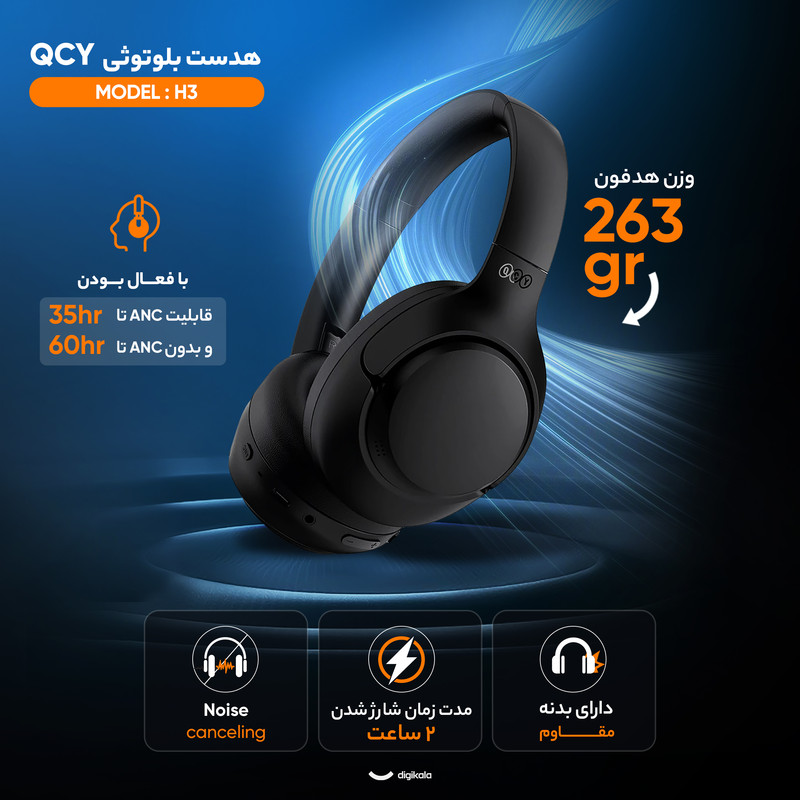 عمر باتری هدفون در حالت پخش موسیقی : با فعال بودن قابلیت ANC تا 35 ساعت و بدون ANC تا 60 ساعت