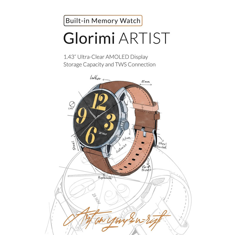 ساعت هوشمند گلوریمی مدل Artist مناسب برای ورزش، کنترل سطح اکسیژن خون، شمارش ضربان قلب، پایش وضعیت خواب با بند چرم