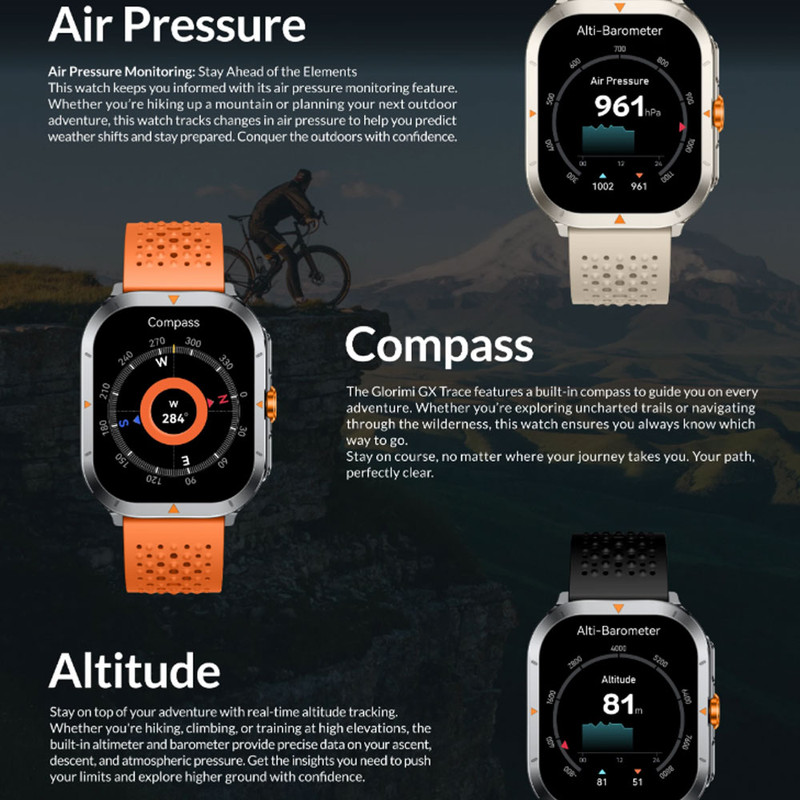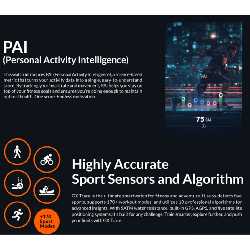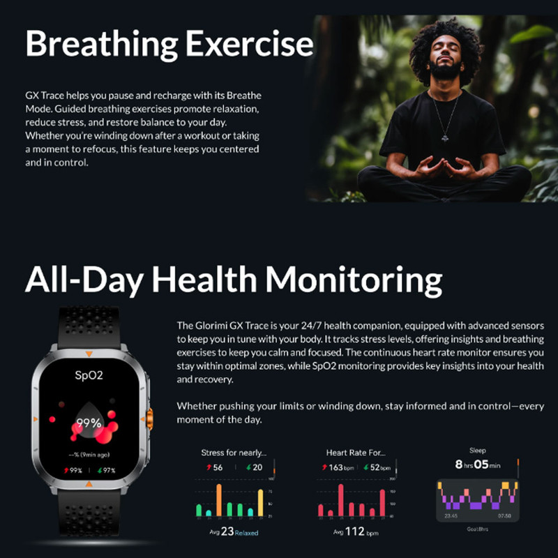 ساعت هوشمند 53 میلیمتری گلوریمی مدل GX TRACE با بند سیلیکونی