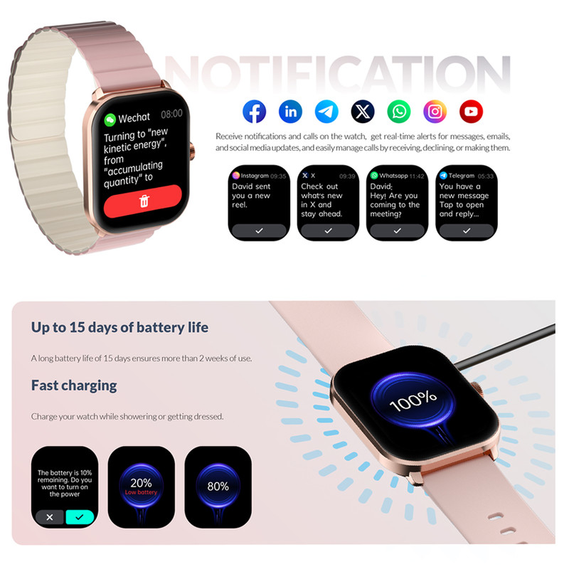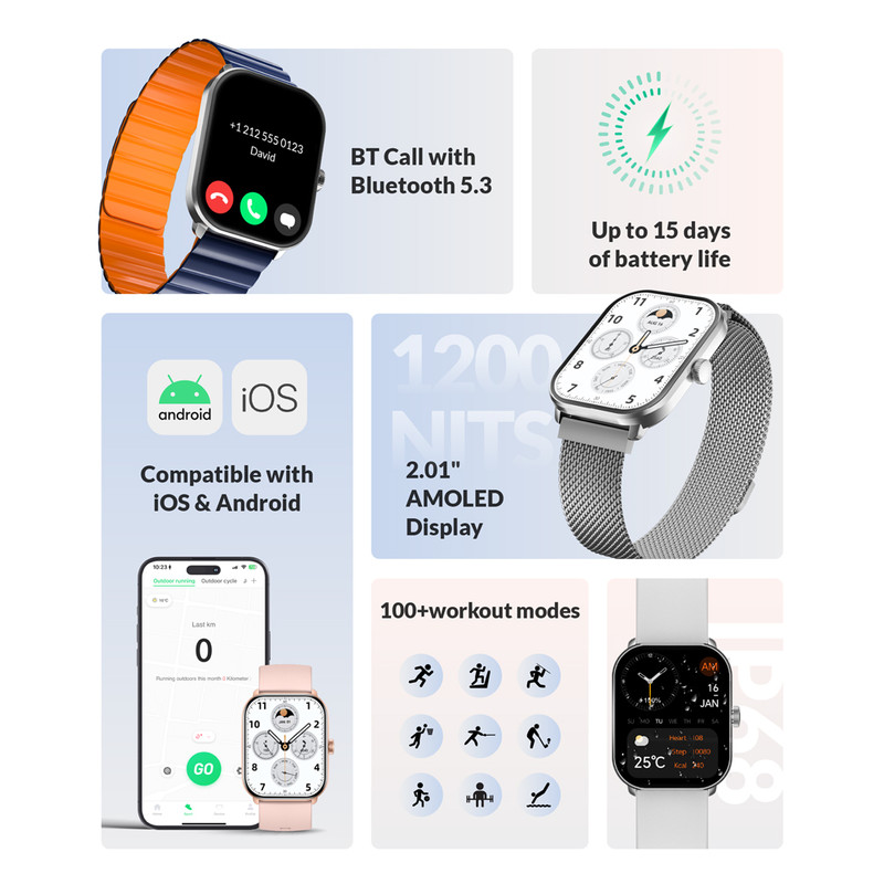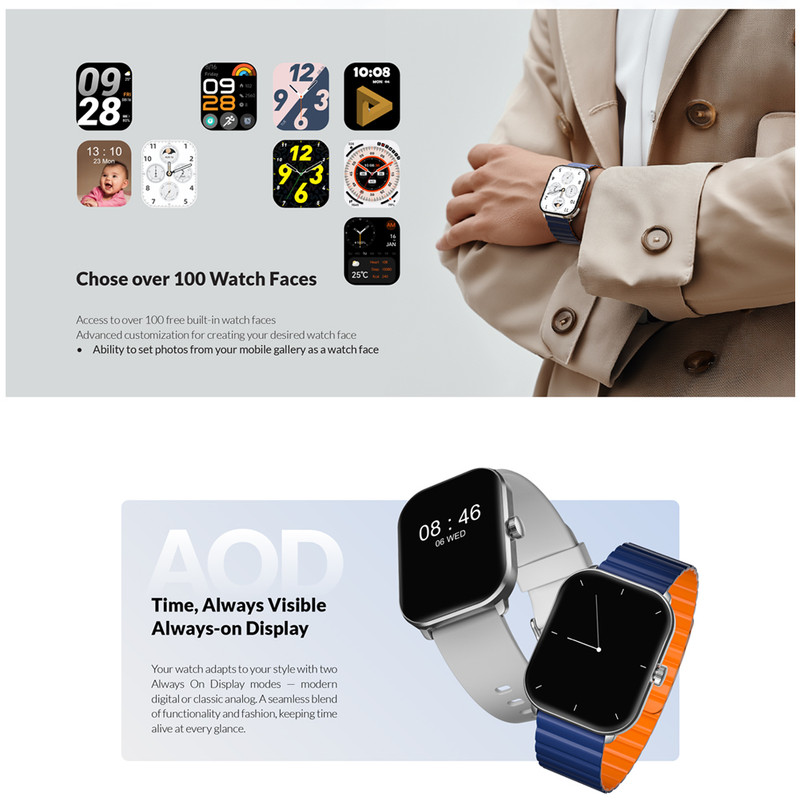 قابلیت‌های ساعت هوشمند : قابلیت مکالمه از طریق بلوتوث , کنترل موسیقی (Music Player) , پشتیبانی از زبان فارسی در منو و سیستم‌عامل , قابلیت تغییر طرح ساعت یا تم , صفحه همیشه روشن (Always-on Display)